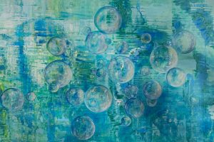 Aqua Bubble Dream – 80 x 120 cm – Acryl auf Leinwand geklebt auf Holzplatte – Sandra Lederer 2026