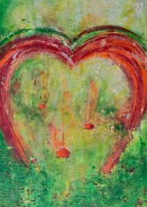 Augenblick im Herzen – 70 x 50 cm – Acryl/Neonfarben mit Strukturen auf Holzplatte – Sandra Lederer 2026