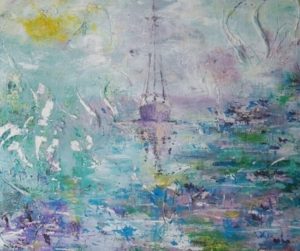 Roseninsel – 40 x 50 cm – Acryl/Öl mit Strukturen auf Leinwand – Sandra Lederer 2019